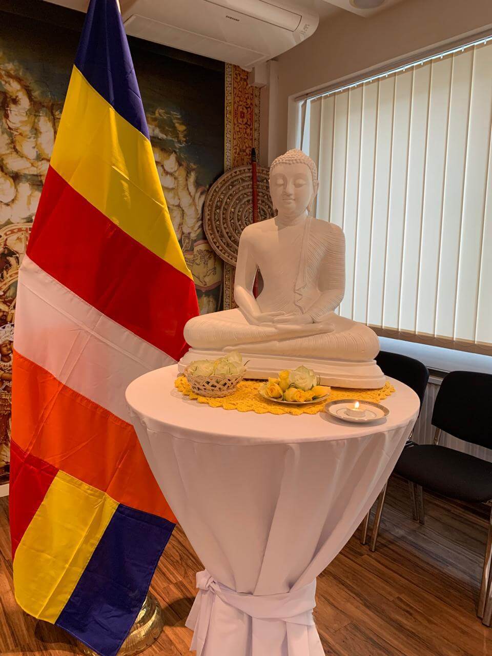The religious observances were performed by Ven. Dr. Wijayarajapura Seelawansa Thero, the founder and chief incumbent of the Austrian Dhamma-Zentrum Nyanaponika in Vienna.