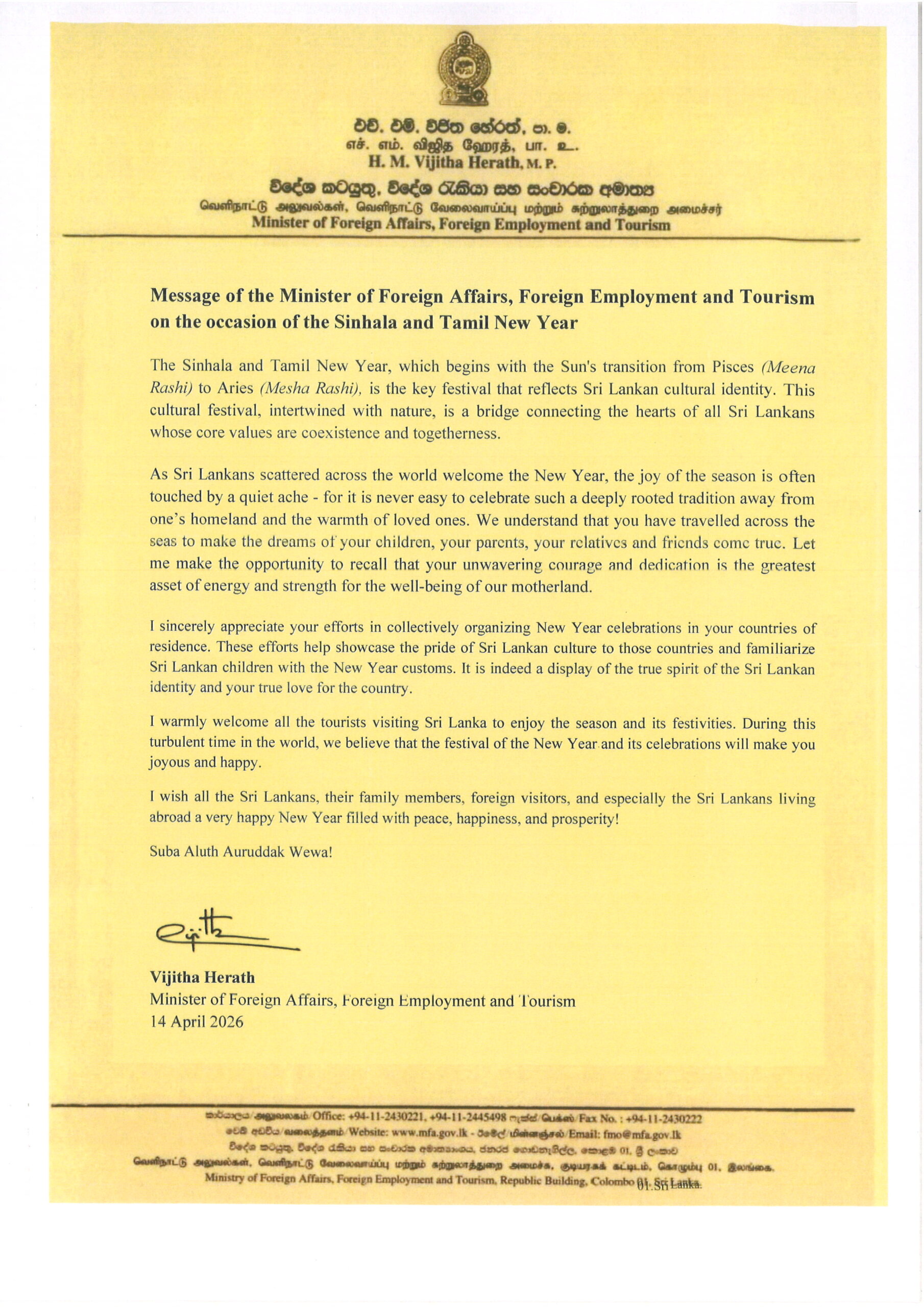 New Year Message from the Hon. Minister of Foreign Affairs, Foreign Employment and Tourism – English